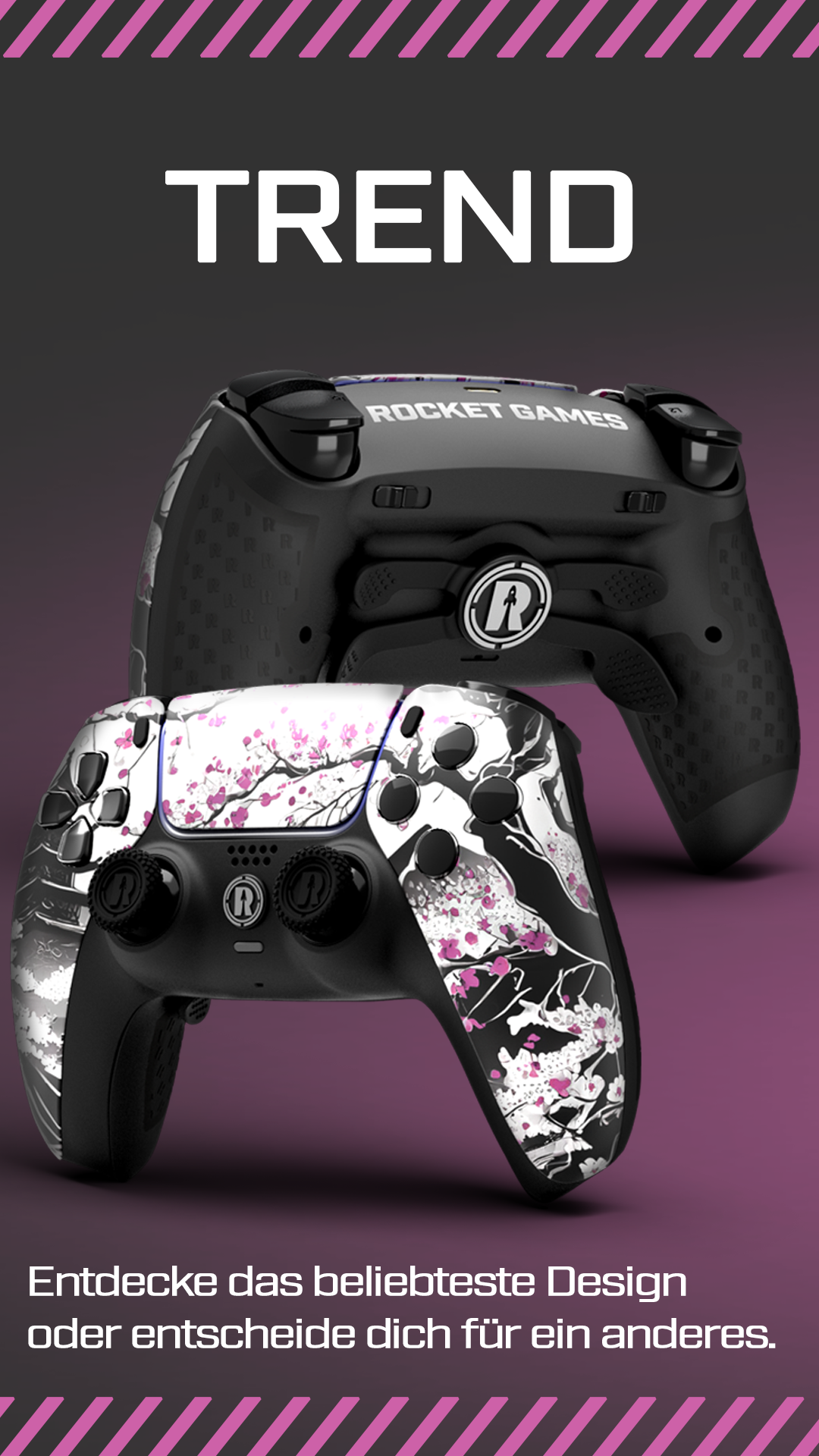 Avec la manette Rocket Games PS5 Configurateur vous pouvez concevoir votre contrôleur exactement comme vous le souhaitez–des couleurs aux boutons en passant par Effet Hall Bâtons, gâchettes et bien d'autres fonctionnalités.