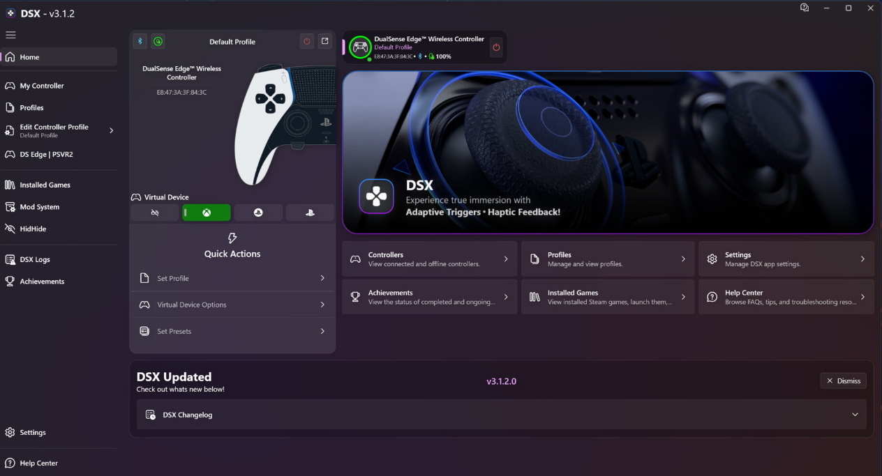 Ihr DualSense™, DualSense Edge™ oder DualShock™ 4 ist nicht nur Hardware. Mit DSX wird er zu einer Erweiterung Ihrer Instinkte. Jeder Tastendruck fühlt sich bewusst an. Jeder Triggerzug fühlt sich abgestimmt an. Jeder haptische Impuls reagiert genau so, wie Sie es möchten.